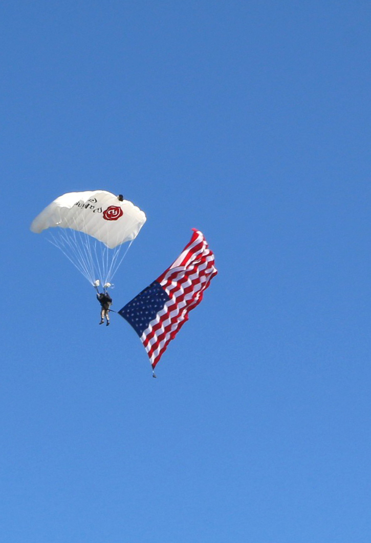 The parade was the highlight the day’s events which featured 140 units participating this year, including floats, a composite marching band from Duplin high schools, JROTC units from James Kenan High School and East Duplin High School, as well as military vehicles, a large array of fire trucks, beauty queens and the always favorite collections of cars, clowns and a drum and bugle corps from area Shriners. The parade kicked off with a low-altitude flyover by aircraft from the N.C. Forest Service based at the Duplin County Airport in Kenansville and the arrival of the flag from a skydiving flag bearer.